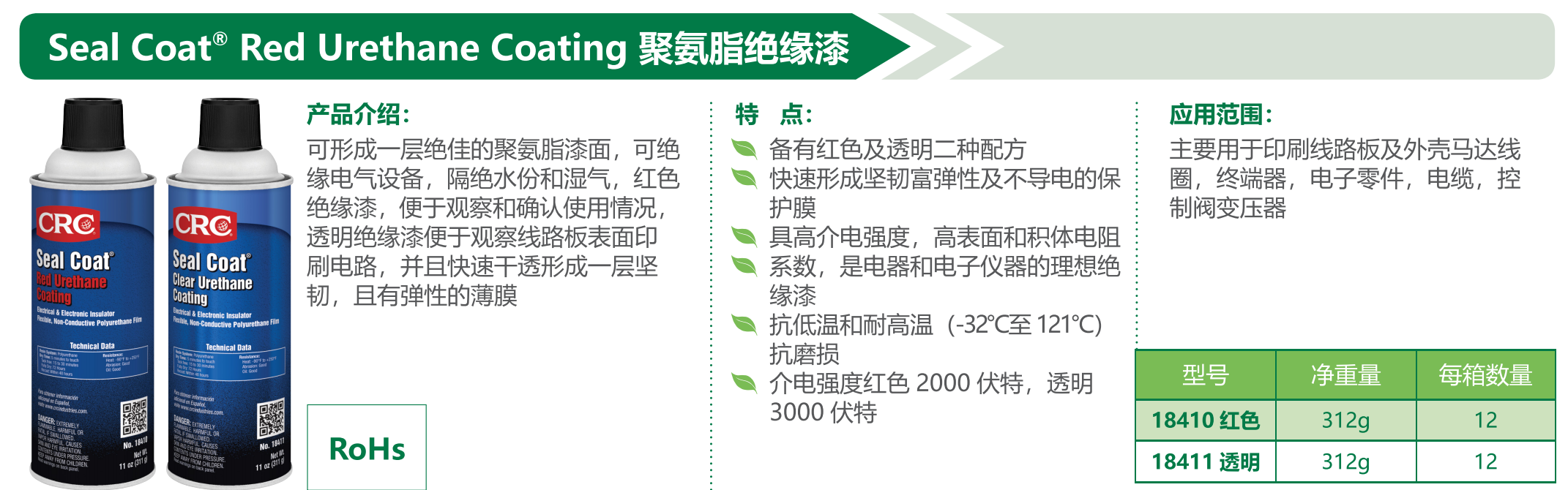 1. CRC18410/18411聚氨脂絕緣漆 美國CRC18410/18411產(chǎn)品介紹: