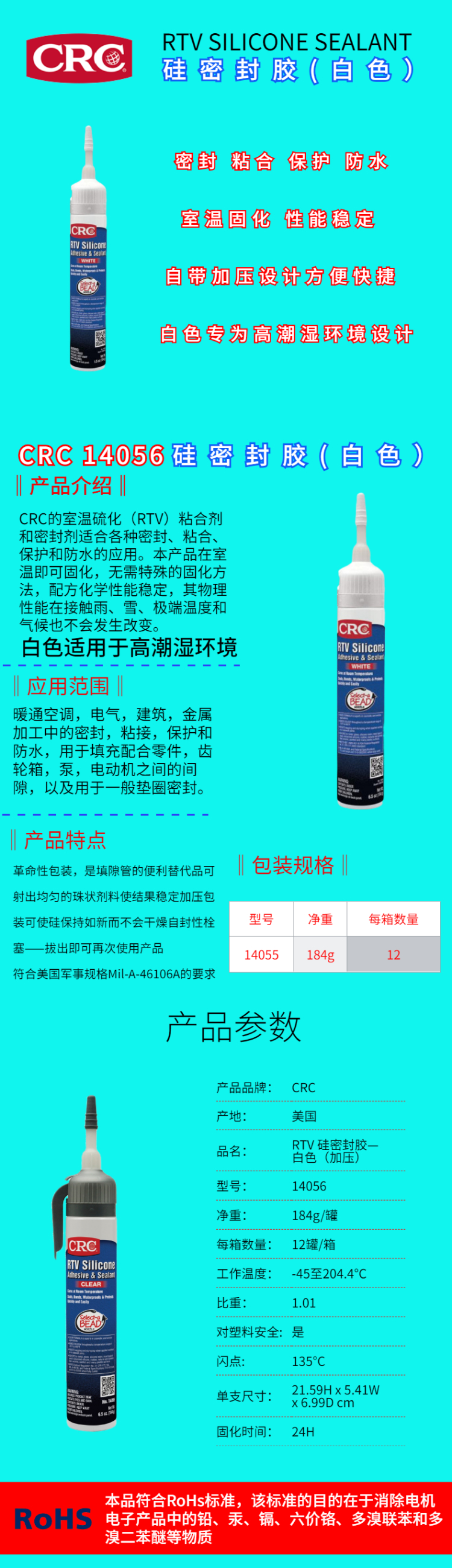 美國CRC-14056白色RTV硅粘合密封劑 密封膠